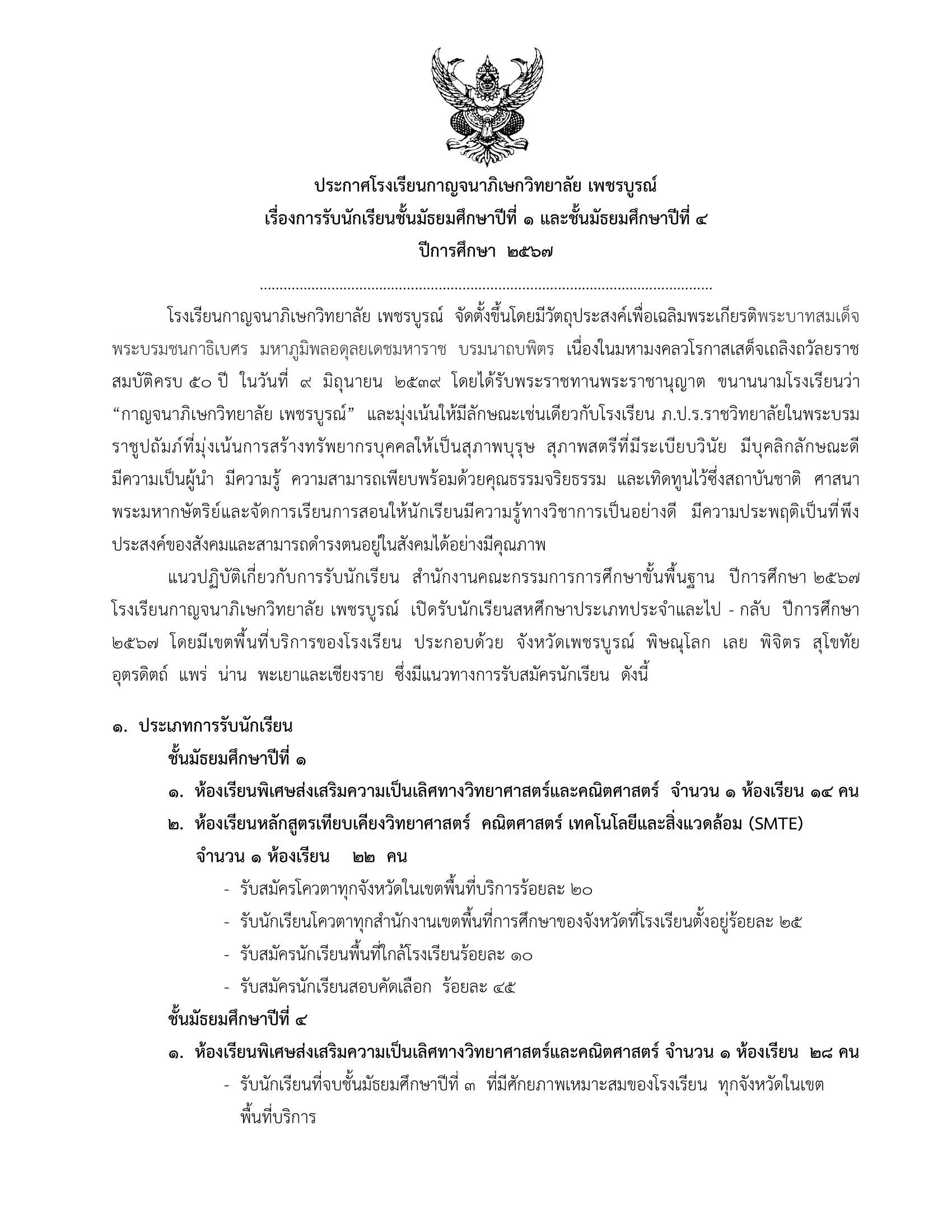 ประกาศรับสมัครสอบนักเรียนระดับชั้นมัธยมศึกษาปีที่ 1 และปีที่ 4 ปีการศึกษา 2567 (รอบ 2)