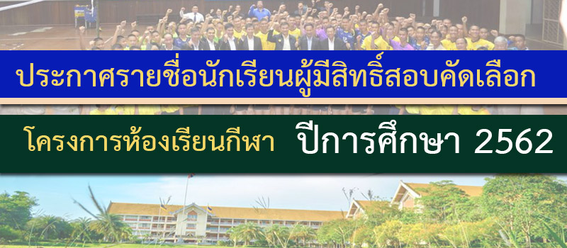 ประกาศรายชื่อนักเรียนผู้มีสิทธิ์สอบคัดเลือกโครงการห้องเรียนกีฬา ปีการศึกษา 2562