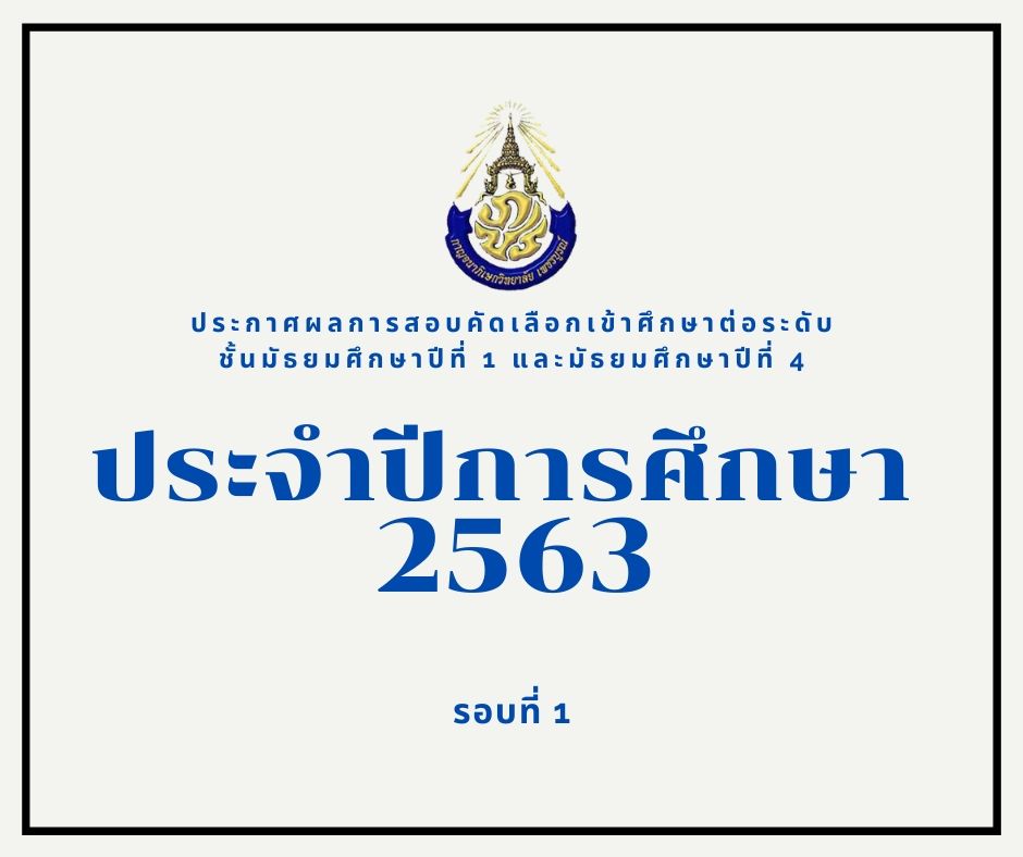 ประกาศผลการสอบคัดเลือกเข้าศึกษาต่อระดับชั้นมัธยมศึกษาปีที่ ๑ และมัธยมศึกษาปีที่ ๔ ปีการศึกษา ๒๕๖๓