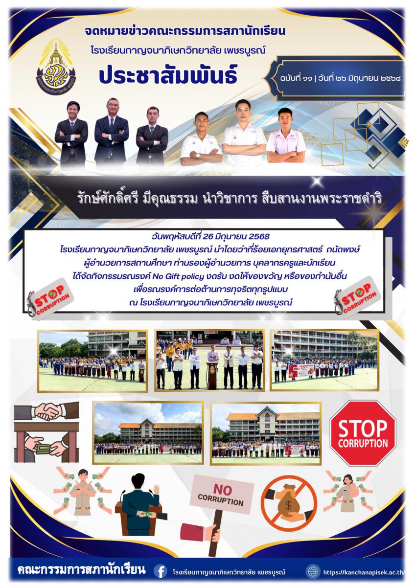 o15 ประกาศเจตนารมณ์และการสร้างวัฒนธรรม ตามนโยบาย No Gift Policy จากการปฏิบัติหน้าที่